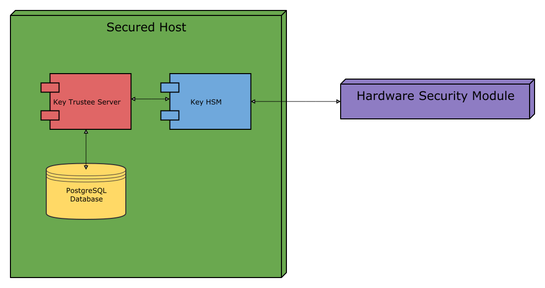 For increased security, Key HSM should always be installed on the same host running the Key Trustee Server. This reduces the attack surface of the system by ensuring that communication between Key Trustee Server and Key HSM stays on the same host, and never has to traverse a network segment.